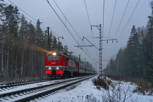 Электровоз ЭП2К-219 на перегоне Манушкино - Павлово-на-Неве с поездом 074Е Санкт-Петербург — Тюмень