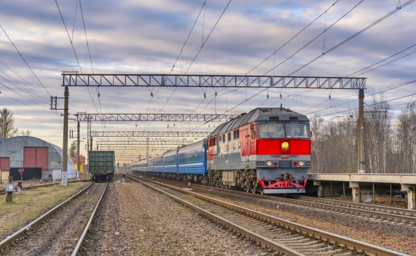 Тепловоз ТЭП70-0511 с поездом №51 Санкт-Петербург — Брест следует по станции Антропшино