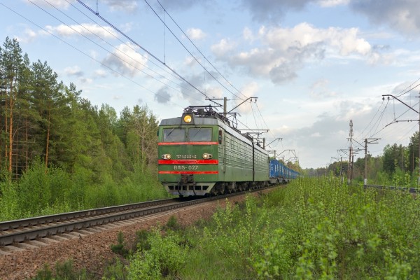 Электровоз ВЛ15-027 с контейнерным поездом на перегоне Васкелово — Орехово