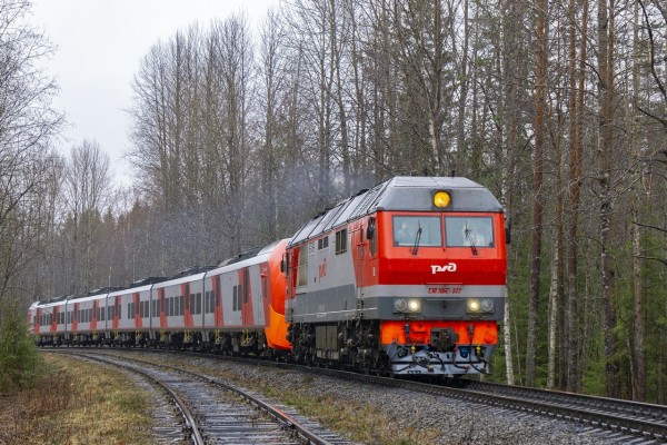Поезд 827 Санкт-Петербург - Рускеала. Станция Кааламо, Карелия. V.2021